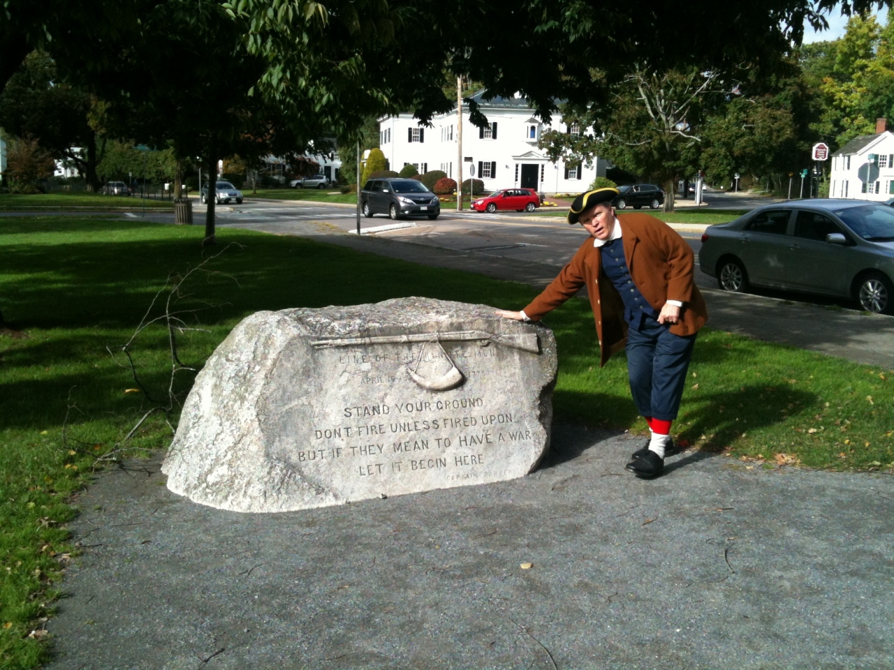 1775年4月19日に、ここレキシントンで始まった戦いが自由な国のアメリカ合衆国独立第一歩となりました。いくつかの史跡が一般公開され保存されています。バトルグリーンには当時のコスチュームをまとった解説員もいて、写真にも快く応じてくれました。