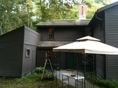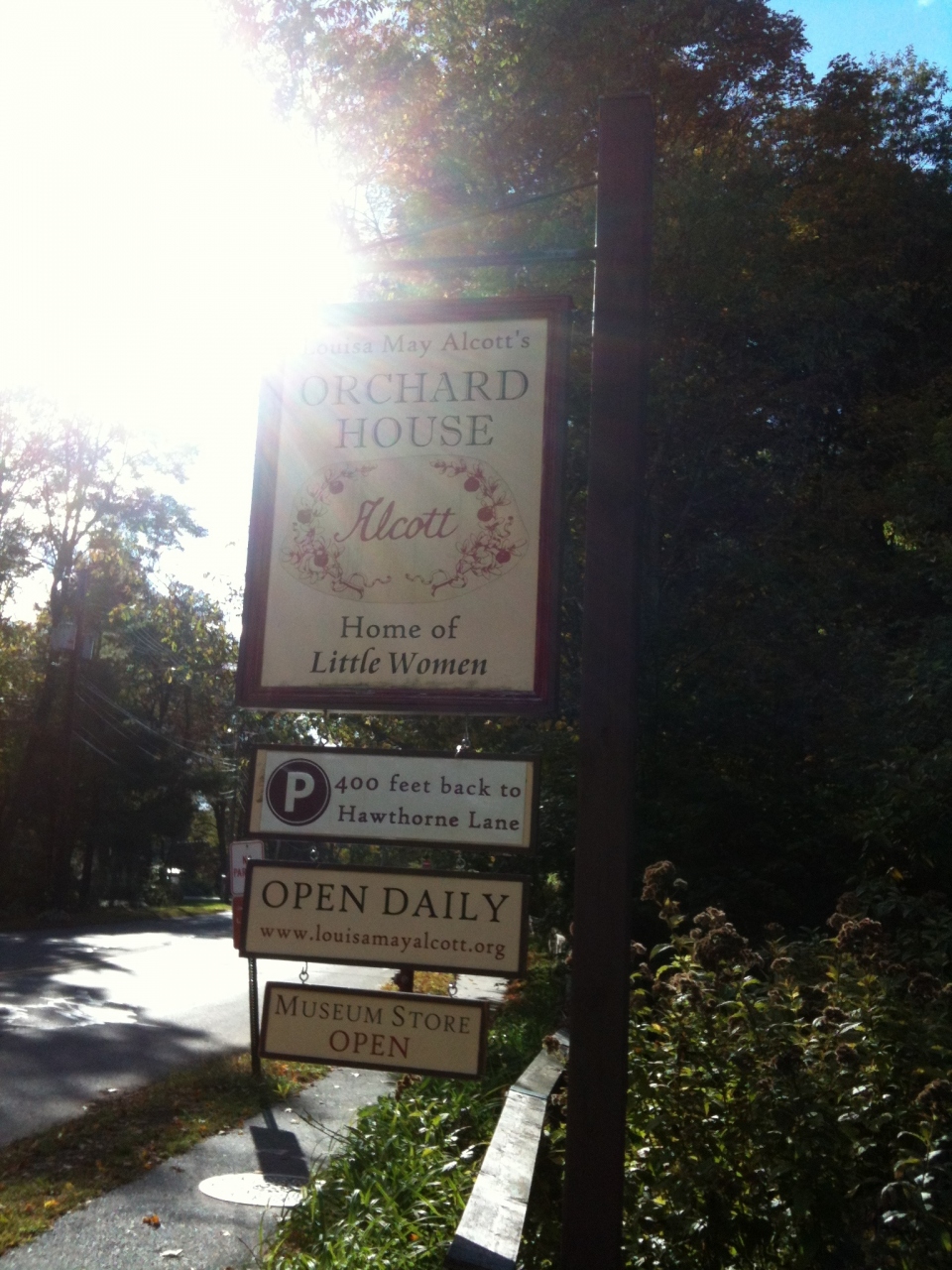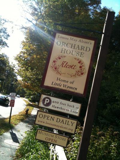 オルコット四姉妹の絵が飾られ若草物語の世界です。オーチャードハウスの中に入るとショップになっていて屋根窓が明るくて特徴的な建物でした。10月に訪問しましたが、クリスマスツリーが地味に飾られていて、ツリーのオーナメントは鳥や小動物でした。