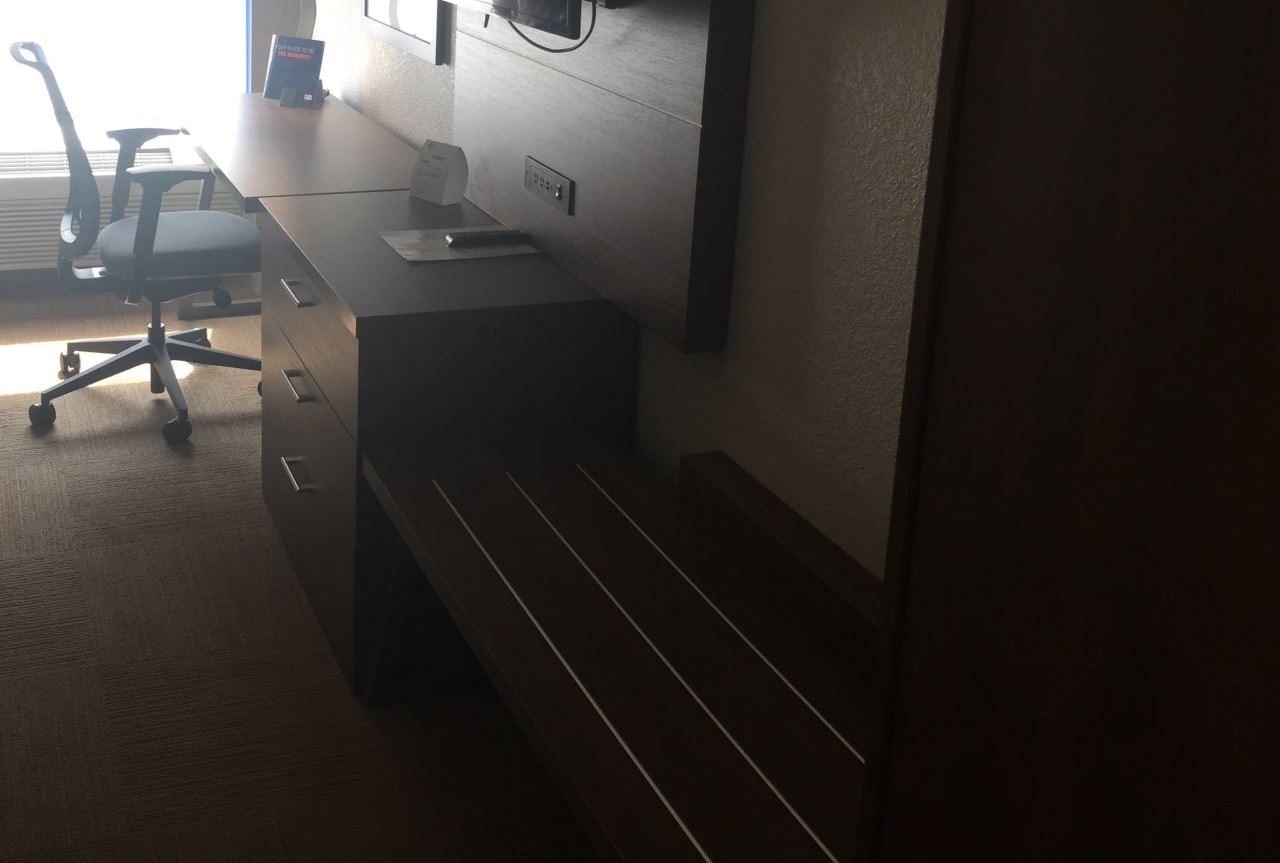 車があればカントリークラブプラザから5分ほどで到着します。駐車場も無料です。建物の内装はハイセンスなブティックホテルですが、宿泊料金もお手頃でした。この時の宿泊レートは$76+諸経費$21.70で$97.70でした。