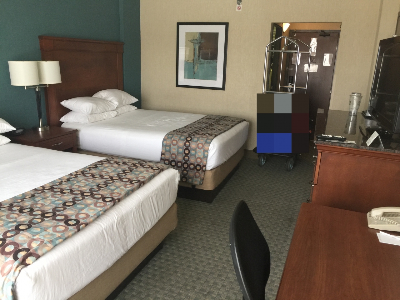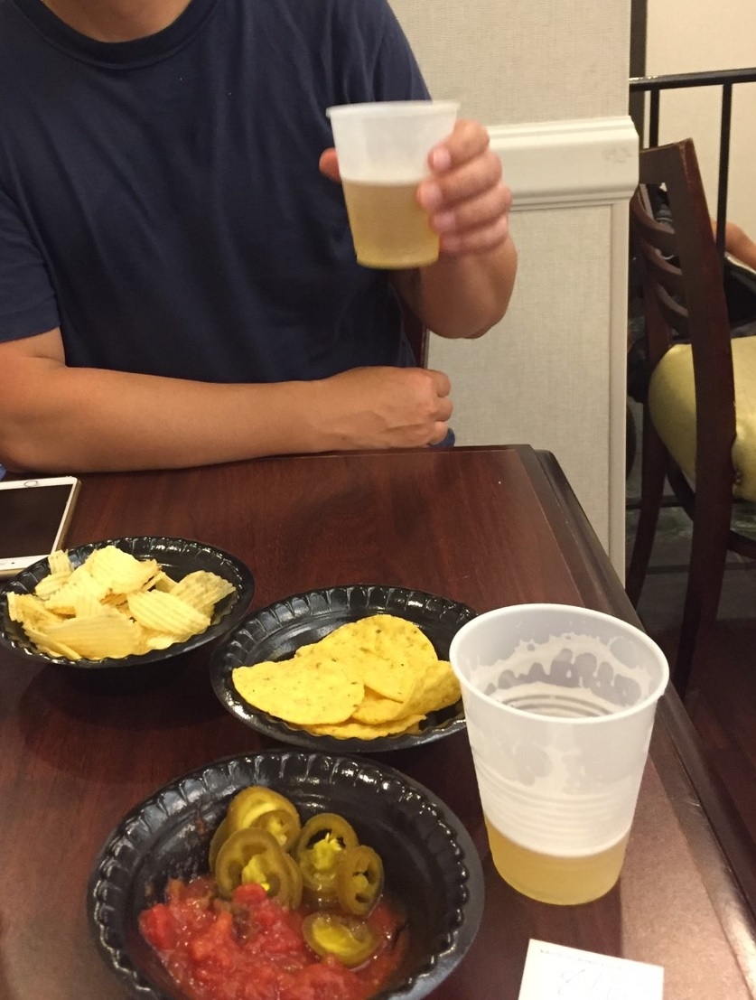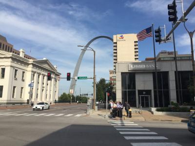 ゲートウェイアーチまで2kmくらいなので歩いて行けますが、途中の道に浮浪者が多く日本の女性にはタクシーかレンタカーで移動することをお勧めします。駐車場は無料。チェックイン時にロビーで飲食できるお酒とツマミの無料券をくれます。宿泊費は79.00ドル+税等で100.11ドルでした。