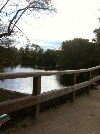 レキシントンからコンコードを結ぶレキシントンロードがイギリス軍の進軍経路で、そのコンコードのオールドノース橋のコンコード川を挟んでアメリカ独立軍との戦争が勃発した地に来ました。橋の東側にはイギリス軍戦死者の碑や高くそびえるモニュメントがあります。