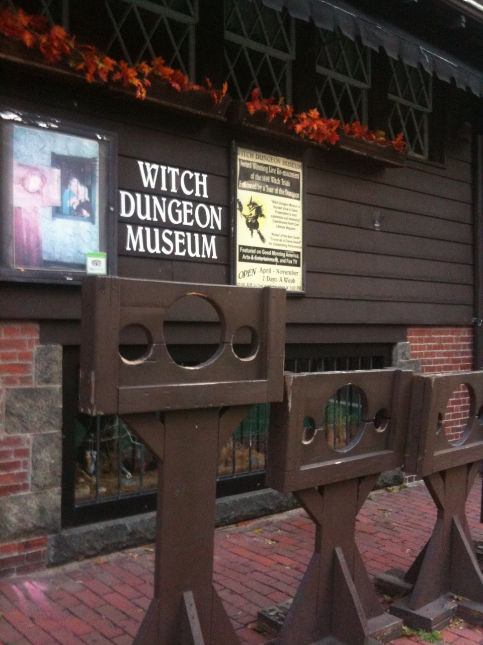早朝に街歩きをしたので、開館前に来ました。そこにはポスターが貼ってあり、開園後に入場料を払って魔女裁判の芝居を見ることができるようでした。道路沿いに面白写真の撮影スポットがあるので、そこで記念写真を撮るだけでしたが記念になりました。