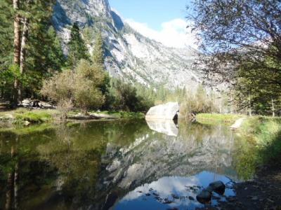 湖にアクセスするトレイルも森林浴しながら進めてマイナスイオンたっぷりの雰囲気です。落ち葉も素敵な雰囲気を演出してくれます。しかもミラーレイクが見えてくるとパワースポットのような気分を味合わせてくれます。美しい山と空を同時に見渡すことができ、達成感を味わえます。
