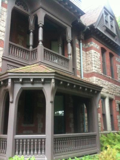 ハートフォードのダウンタウンから車であればアクセスしやすい距離です。「トムソーヤーの冒険」の著者、マーク・トゥエインゆかりの場所は、ミズーリ州のハンニバルも行きましたが、ここは彼の成功した人生を象徴する当時の面影の残されたビクトリア朝の豪邸です。建物の外を見て回りました。