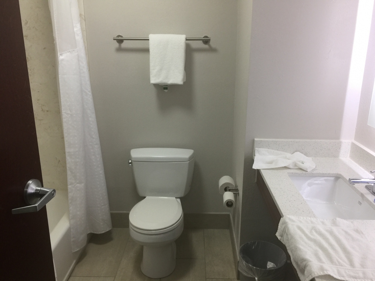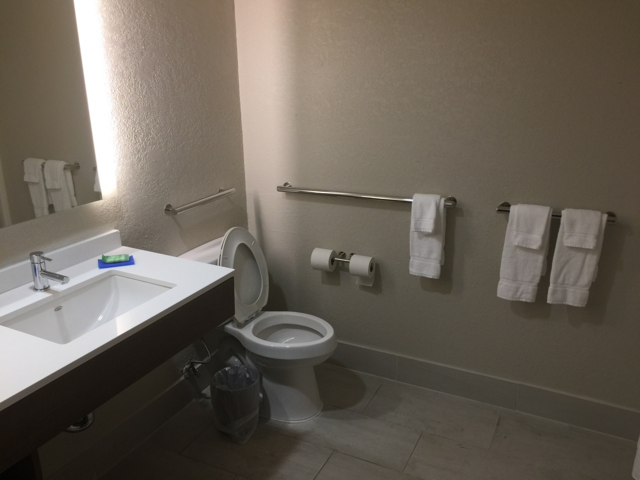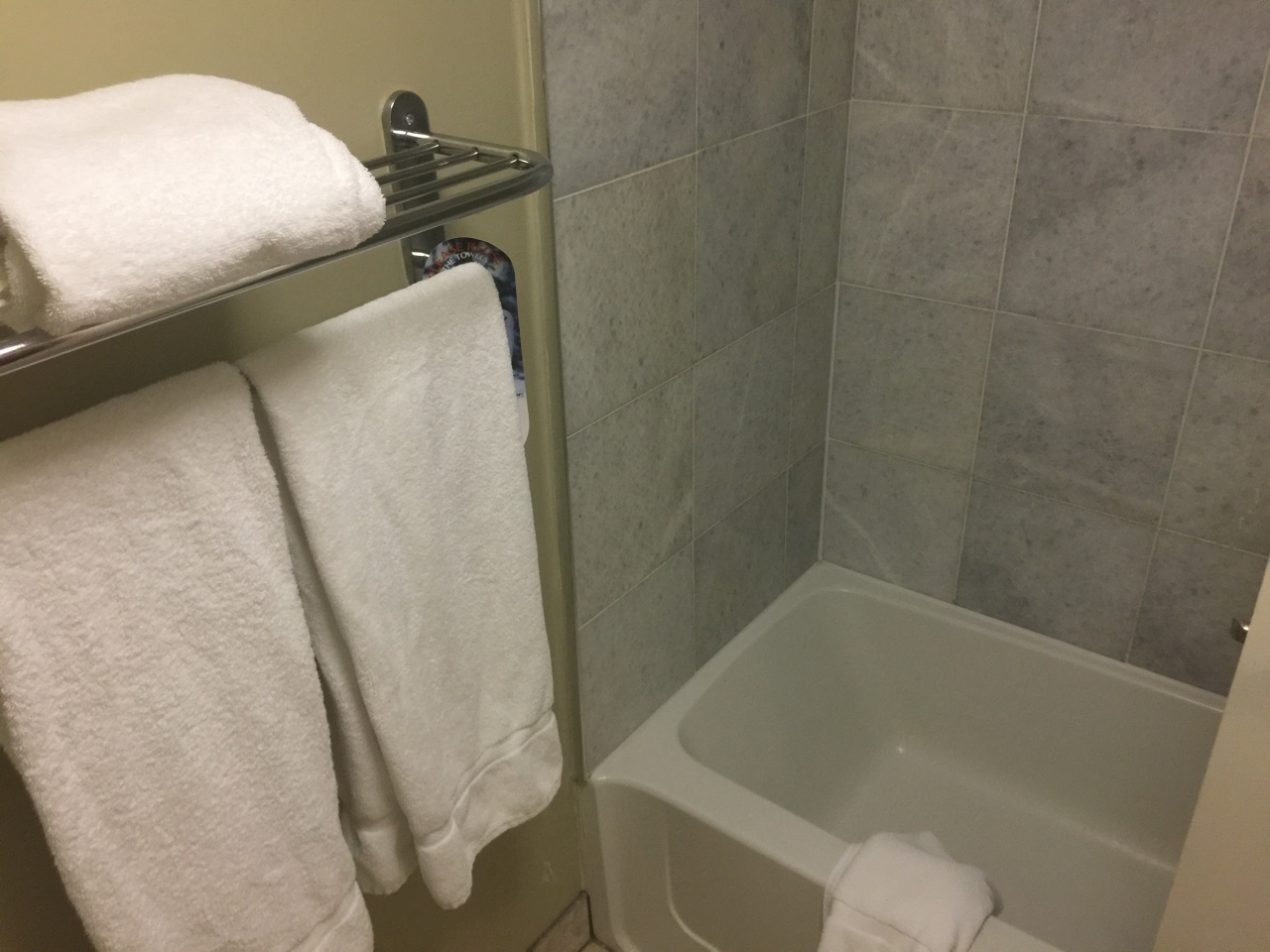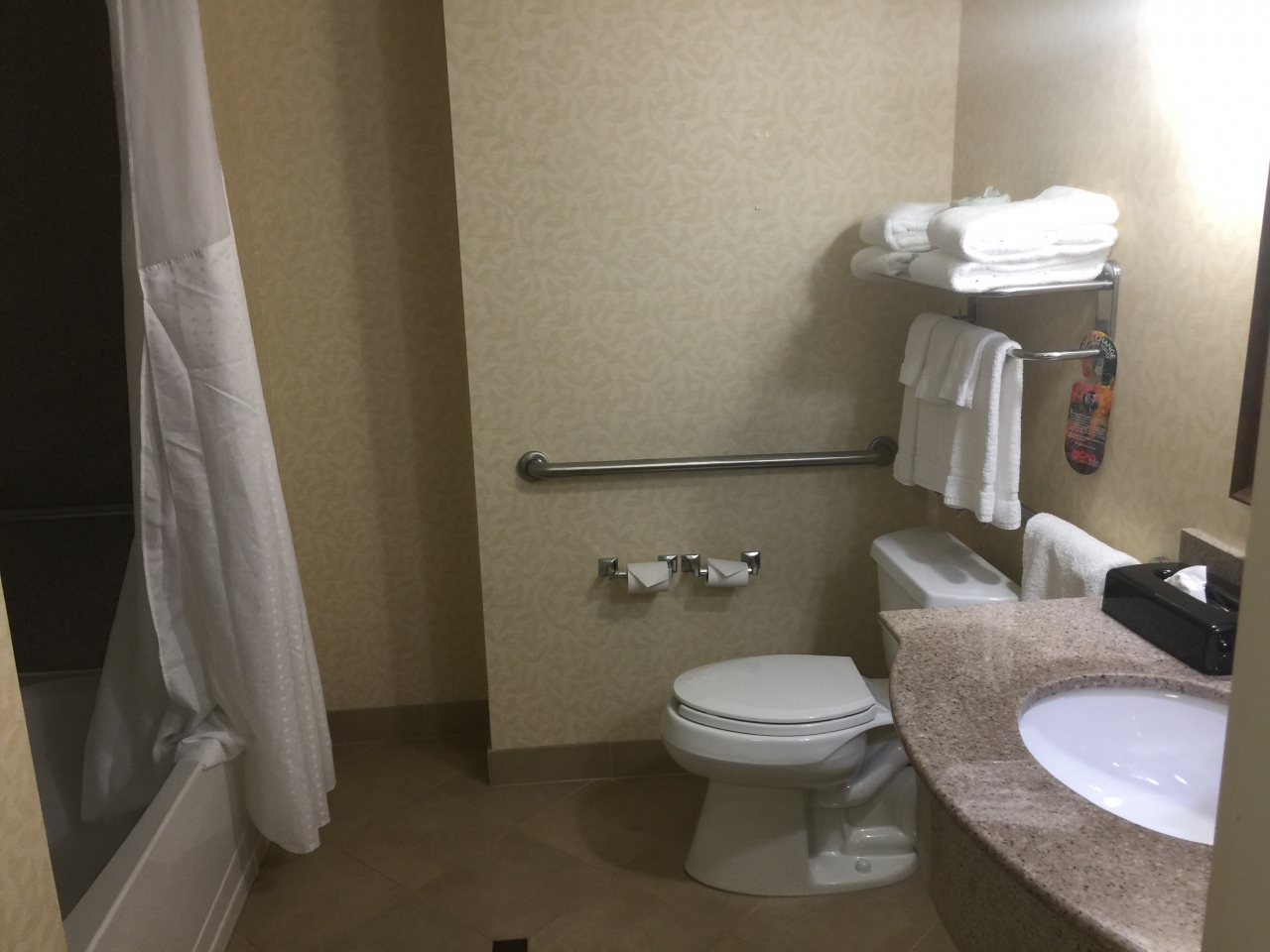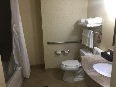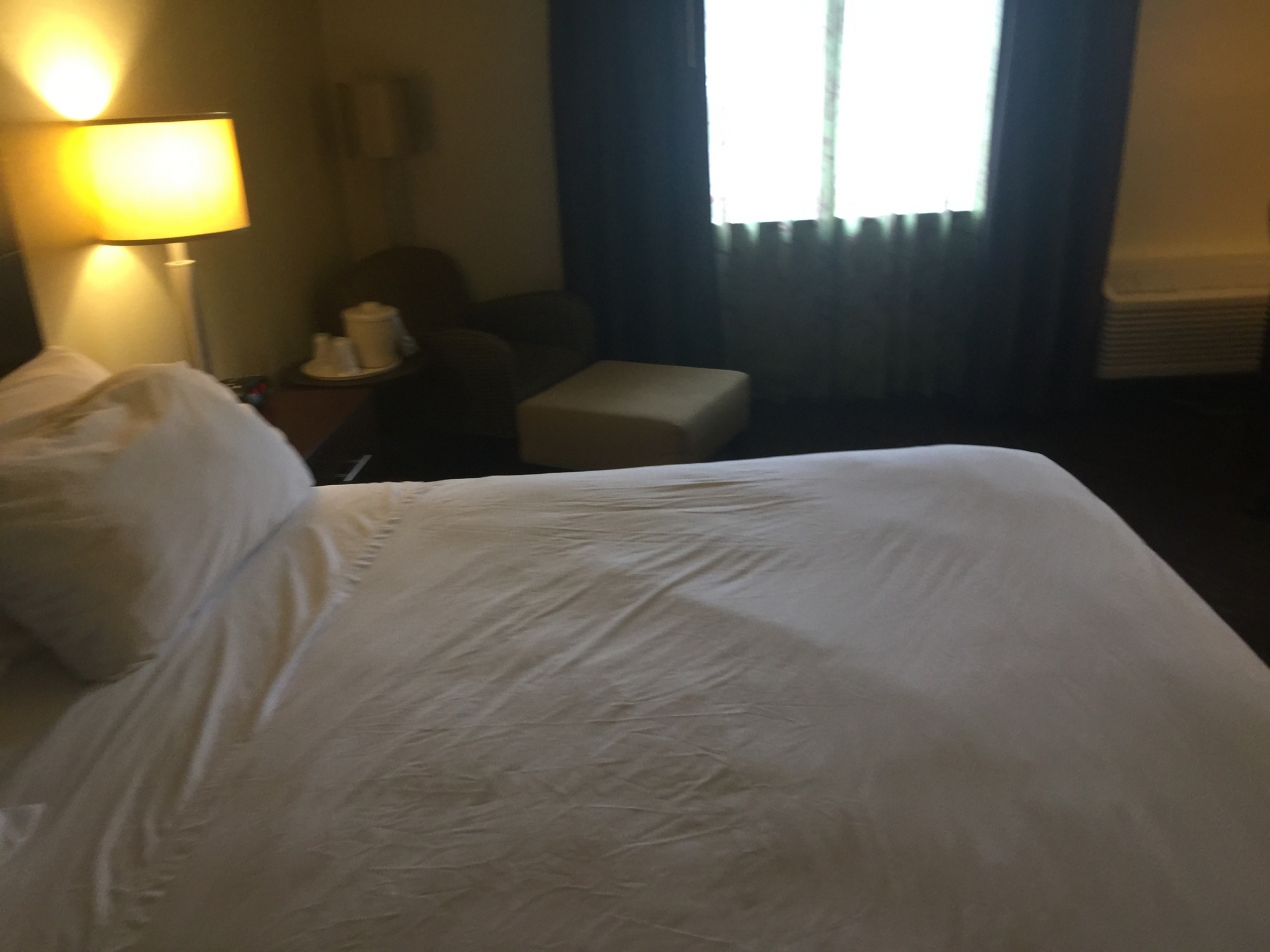 朝食付きで駐車場無料で良いのですが、夕食は近くにレストランが無いで、どこかで買ってからホテルに来るか、ハイウェイの逆側にあるサブウェイかコンビニで買うしかありません。それ以外はホリデイインのスタンダードです。