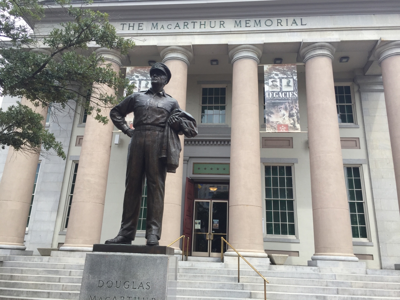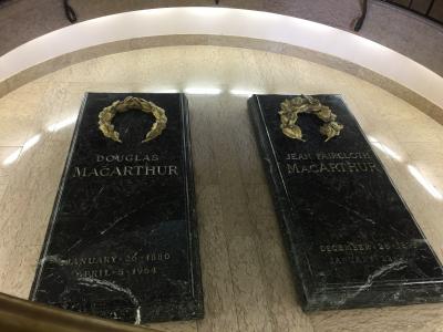 まるで日本人のために作られた博物館ではないかと錯覚するほど、日本人にとって見どころ満載のビジターセンターがまずあります。歴史を学校で勉強した時に見慣れた写真から、始めて見る写真や資料など、本気で見始めたら長時間滞在になってしまいます。お土産屋さんでは貴重なコピーを購入しました。本館に入館するとドーム天井のホールにマッカーサー夫妻の棺が並べられたお墓になっていて、マッカーサーがいかに偉大な人物として葬られているかがわかります。日本にも平和国家への基礎を作った偉大な貢献者として、その名を知らない人はいないでしょう。博物館内の2階には日本との関わりがわかりやすくテーマごとに展示されており、無料で入館できるとは思えないほどの充実ぶりです。最後にはトレードマークのパイプ・帽子・サングラスの実物を見ることができます。