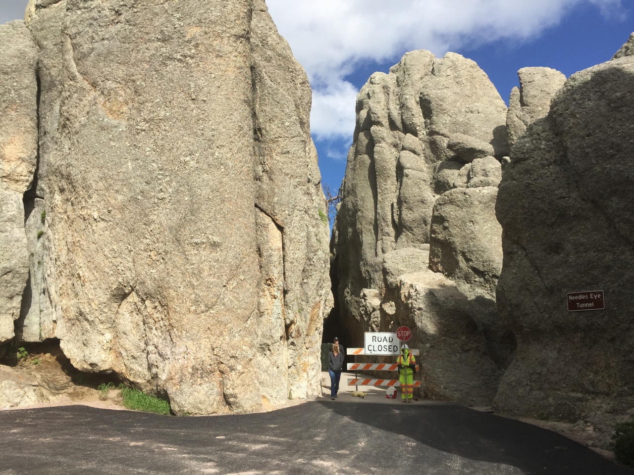 州立公園内の森林の中の道路を走ると奇形岩がいくつも現れ、その先にはとがった岩にトンネルが通されている。その名の通り針の糸を通す穴を連想するような小さなトンネルで車一台がやっと通れるような小ささです。大型車やバスは通れないほどで、当日は歩行者以外は通行止めになっていました。