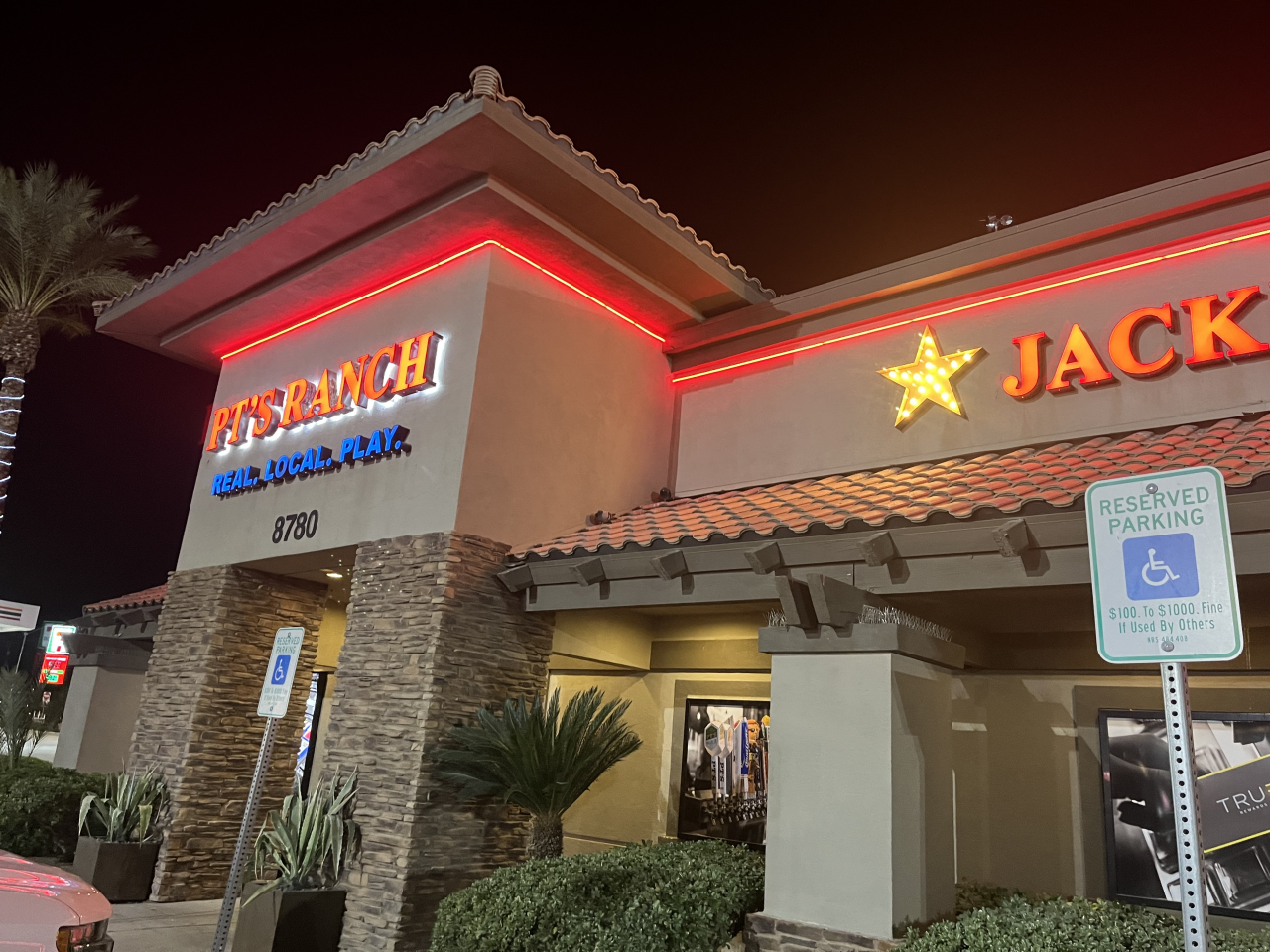 ラスベガスに多数あるローカル向けのスポーツバーのPT'sですが、その中でもRANCHの名前がついているウエスタン調のお店です。メニューは他のPT'sと同様で、ハッピーアワーもあります。生ビールのラージサイズは量も多くお得です。