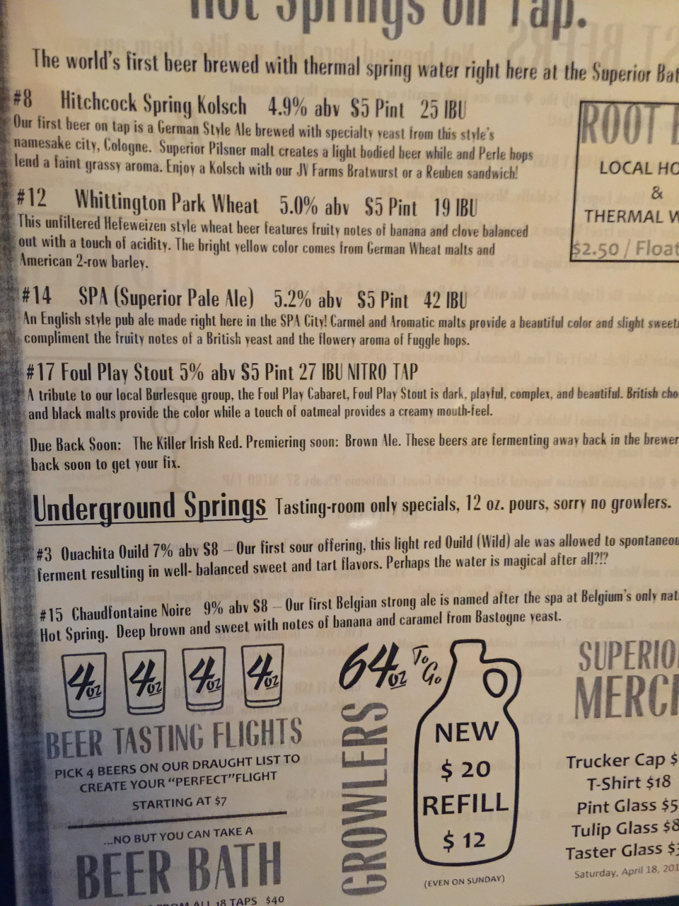 バスハウスで有名なホットスプリングで温泉を楽しんだ際には、こちらのビールと食事がおススメです。オリジナルのビールが多くあり、特にワインビールは素晴らしかったです。歴史のある建物も素敵で老舗の雰囲気です。