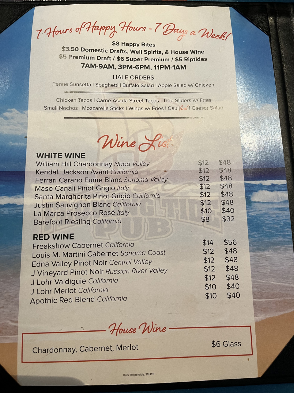 ラスベガス大通りをサウスポイントカジノホテル前まで南に行くと、左側にあります。サウスポイントカジノホテルからは、通りの向かい側にあります。アメリカンなバーフードを中心にしたメニューです。2度目に行ったときに、そのことを話すと、ウエイトレスさんも覚えていてくれてました。ハッピーアワーは空いていて、お値段もお得でした。