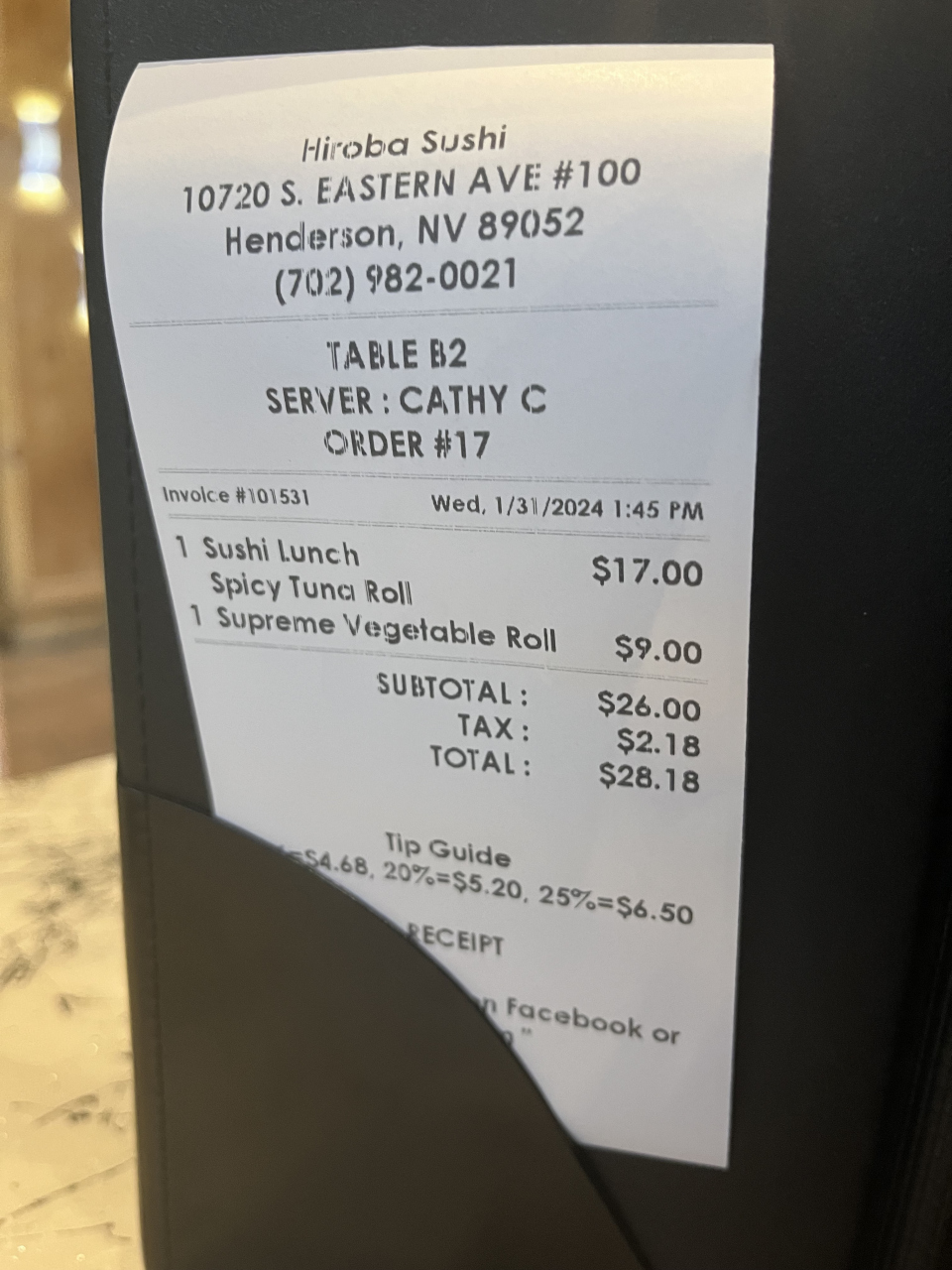 ラスベガスの観光エリアから離れて、地元の人が行く寿司店を探していたら、ココを見つけました。小さめの店内はヘンダーソン地区に住む地元のお客さん向けです。観光客は来るエリアではないので、価格もサービスも嫌な思いはしませんでした。