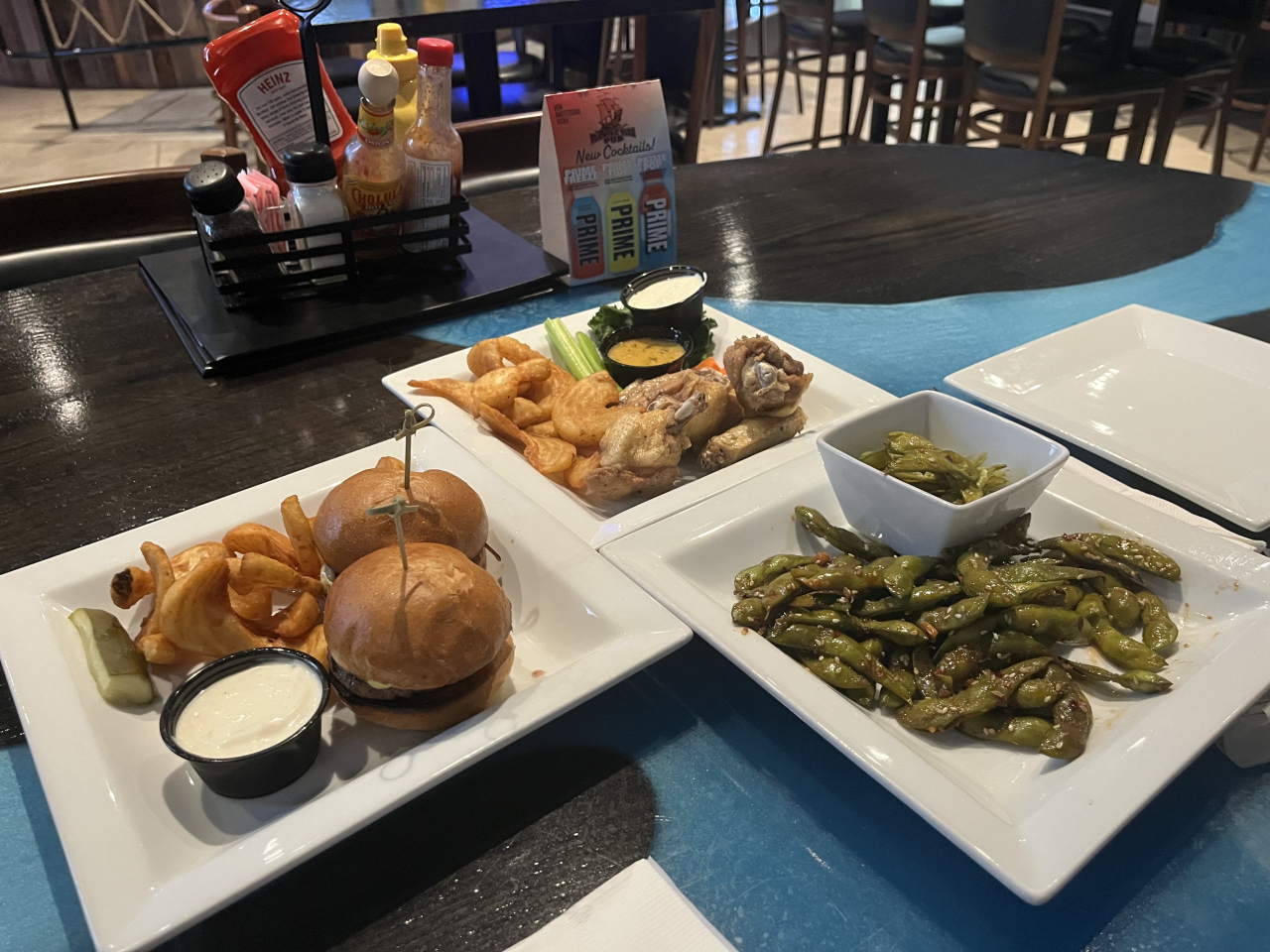 地元のお客さんをメインにしており、仕事帰りの人も多い感じです。大きなガラスの窓があり、その先にはラスベガスのストリップ通りに林立するホテル街が眺められます。この景色を楽しみながら、タップビールとバーフードを楽しめます。価格も良心的なので、リビートして来やすいです。
