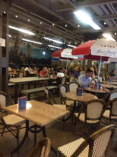 フレンチの名がついていますがフランスの物が揃っているわけではありません。しかもマーケットといってもフードコートに近い構成です。その場で食べることができるフードを提供する店がフードコートのように入っていて、それを買ってテーブルや椅子で食べることができるようになっています。観光客にも使いやすいと思います。