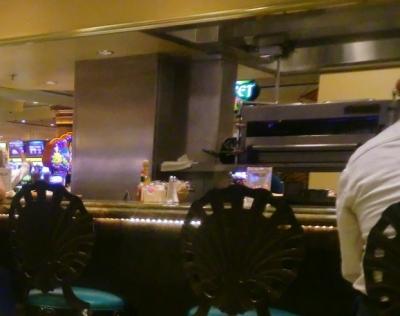 大ぶりでジューシーな生オイスターがメインですが、小ぶりなクマモトを置いている時もあります。入口のホワイトボードに本日のスペシャルが書かれているので、、英会話が不得意な方も入店前に確認できます。毎回カウンター席に座りますが、テーブル席に座ってもカジノに囲まれた店の雰囲気を楽しめました。