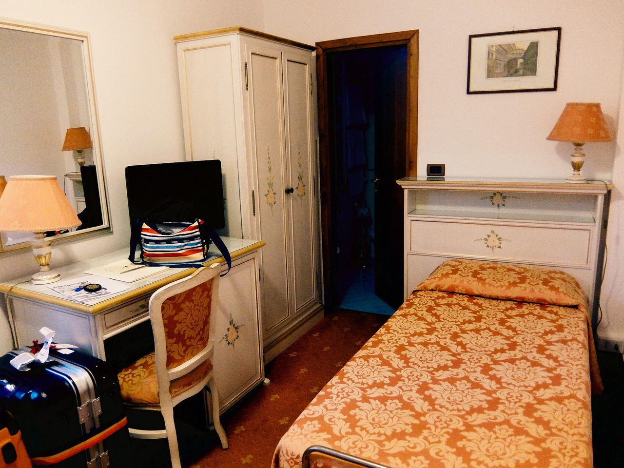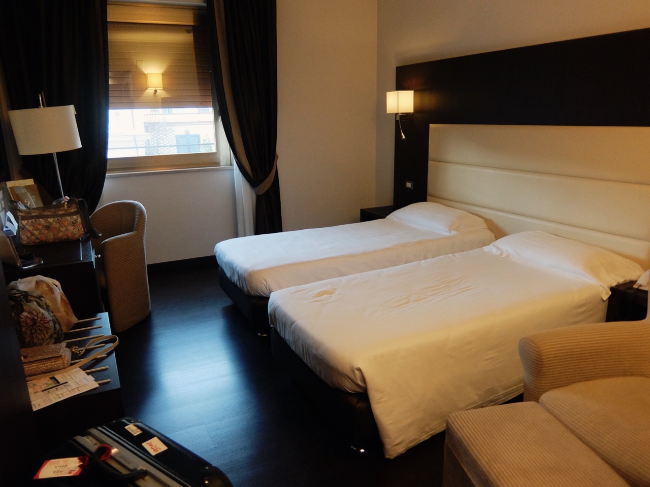 小さなホテルでエレベーターも一つ。部屋も狭くベッドも小さいです。部屋の鍵も開けられなくて悪戦苦闘しましたが、とにかく場所が良いので全てまぁいっかと思えました。