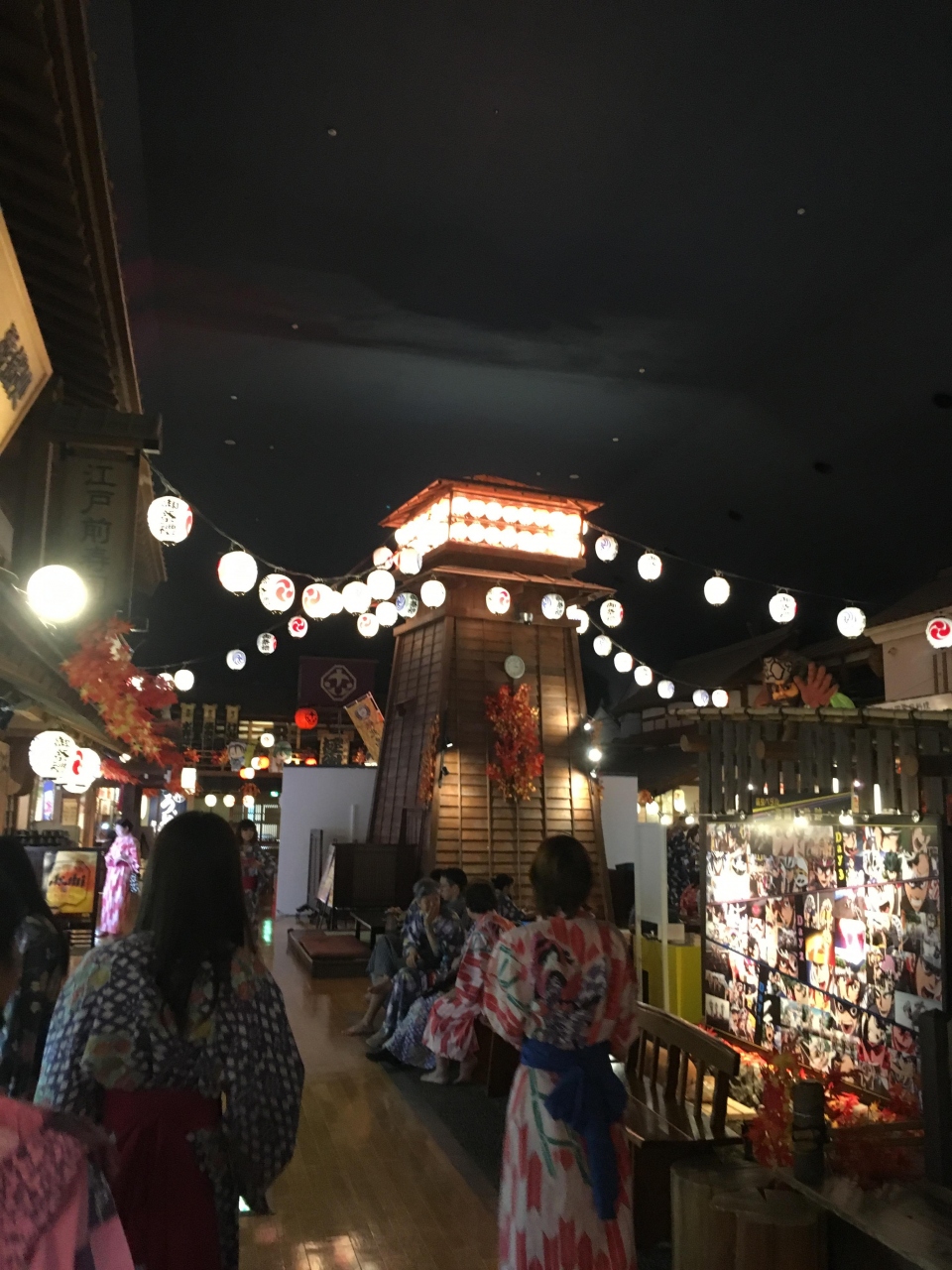 江戸の町をイメージした造りで、館内は浴衣ですごします。(柄は何種類かあって選べます)