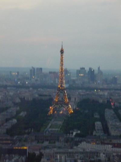 ツアーのなかの夕食の場所として選ばれていたのでいった。ツアー客の予約も受け付けるくらいなので、そう高級レストランというわけではないのだろうが、行ったときには満席だった。窓際は2人席が多く、大人数だと、窓から離れた席になった。しかし、モンパルナスタワーの56階にあるため、とにかく眺めがすばらしく、窓から離れた席でも一段高くしてあったのでそれは変わらなかった。