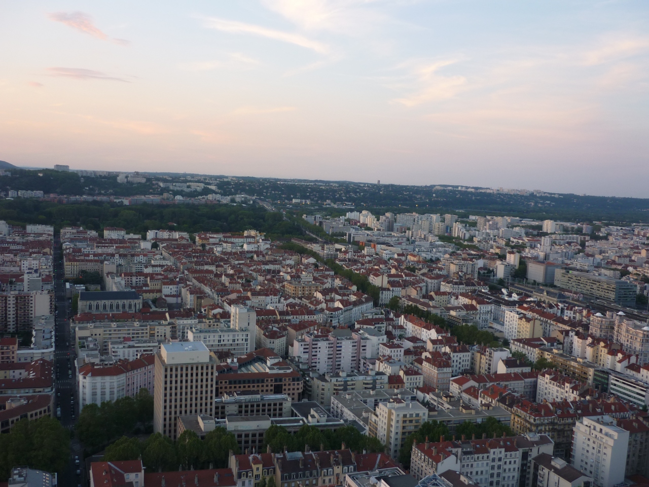 リヨン、フルピエールの丘の上から見える一番背の高い建物がホテルの建物。ホテルはこの建物の30階以上のスペース。そのため、ホテルの窓からの眺望はすばらしかった。