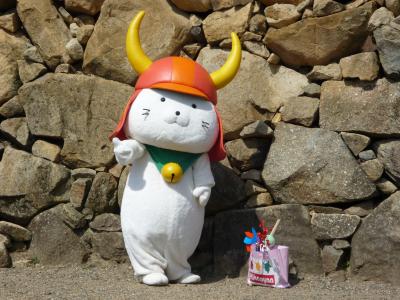 ひこにゃんがちょうど天守閣広場にいたが、囲いがしてあるなかにいるため、2ショットで写真をとることはできない状態。