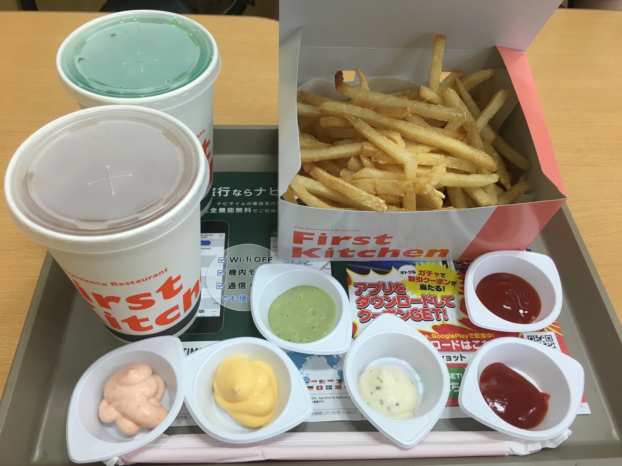 オシャレなカフェもいいですが、長居しないけど少し休憩したいと思う時は安いファーストフードが便利!海にも近く立地も良いです。8/31まで限定のポテトセットを注文しました。- 旅行時期