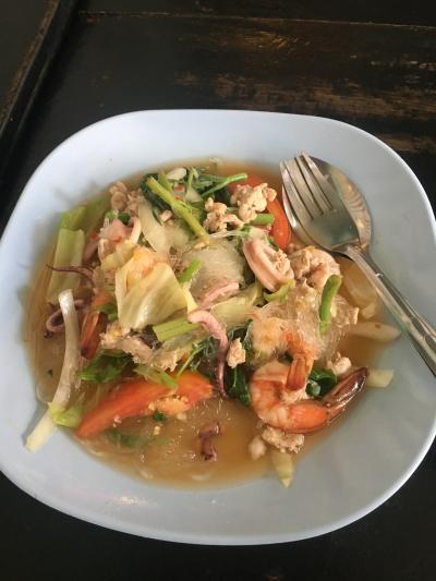私は春雨のサラダとパッタイを注文して130バーツ程でした。
