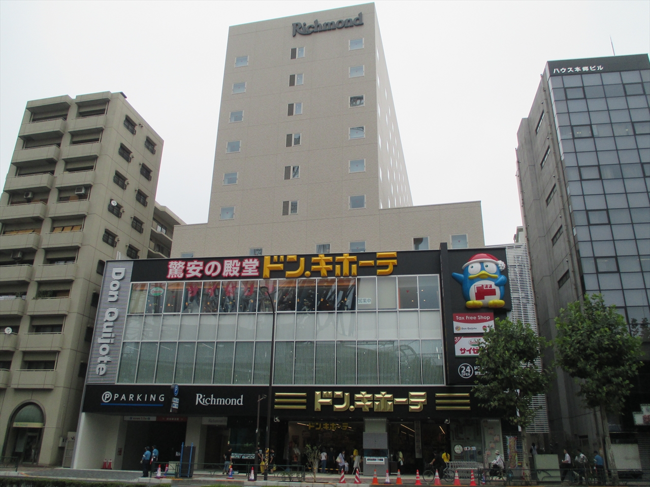 下に24時間営業のドンキホーテがあるので極端な話、手ぶらで来てこの建物内だけで生活可能(笑) ホテルからドンキホーテへは1Fへ降りて一端外に出るか、3Fのサイゼリヤまで下りてエレベーターを乗り換える必要があります。