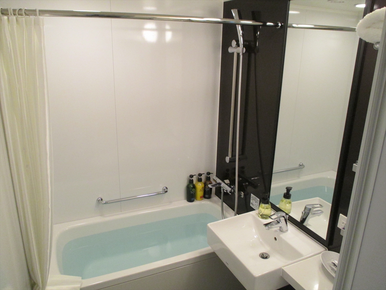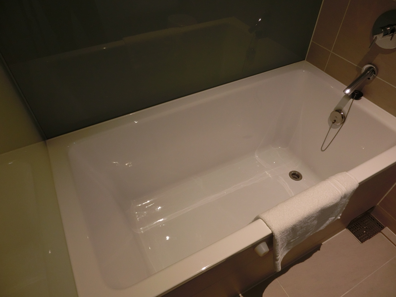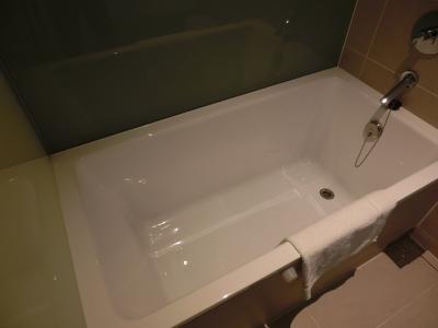 部屋が超ケチケチ路線なので期待してなかったけど、意外に普通でどこもケチってない(笑) シャワーヘッドはグローエ、水流3パターン。140サイズのバスタブ。