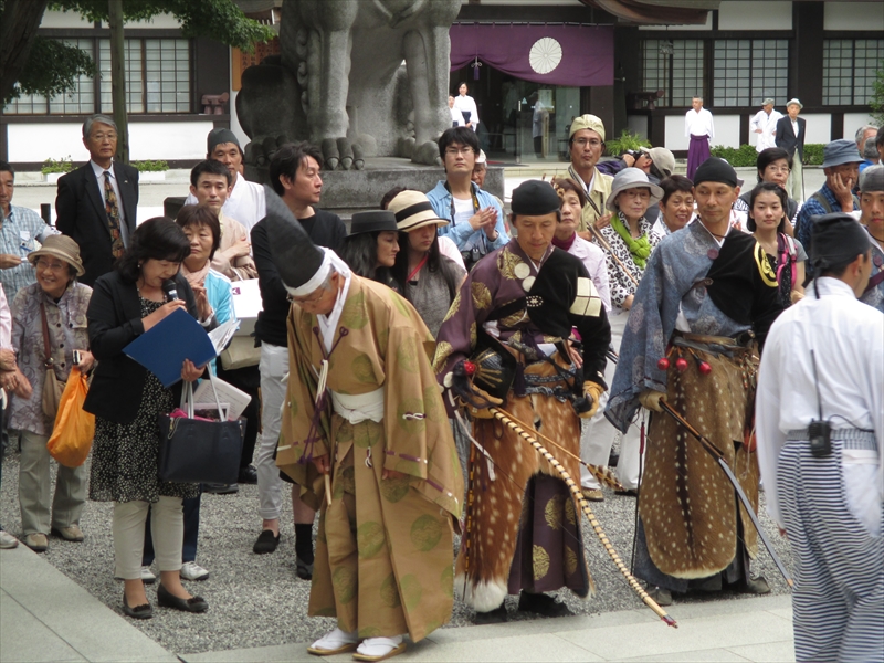 十分。一昨日の〇〇八幡宮の流鏑馬と連戦の観覧者が多く、雑談も専らその話。写真もこちらの方が撮り易いとのこと。観覧スペースは馬場の片側のみ!!! 反対側に人が入らないというのが大きい。片側しかないから、スペースは半分以下のはず。それでいて、こちらの方が場所取りが容易!!!とくればケチのつけようが無い。この日は12:00までに来れば最前列が取れる感じ。