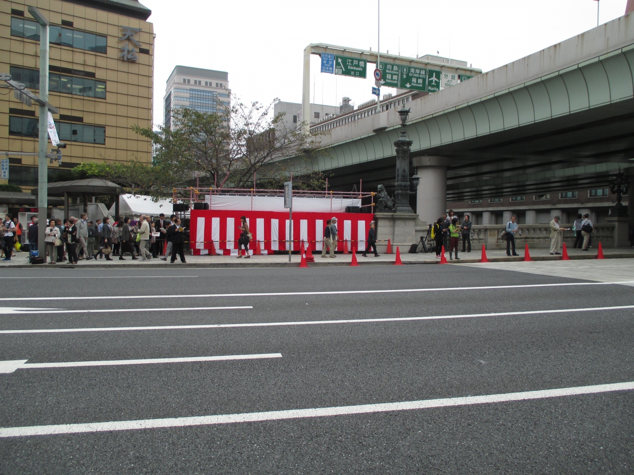 日本橋・京橋まつりの放送席からも、パレードの合間に