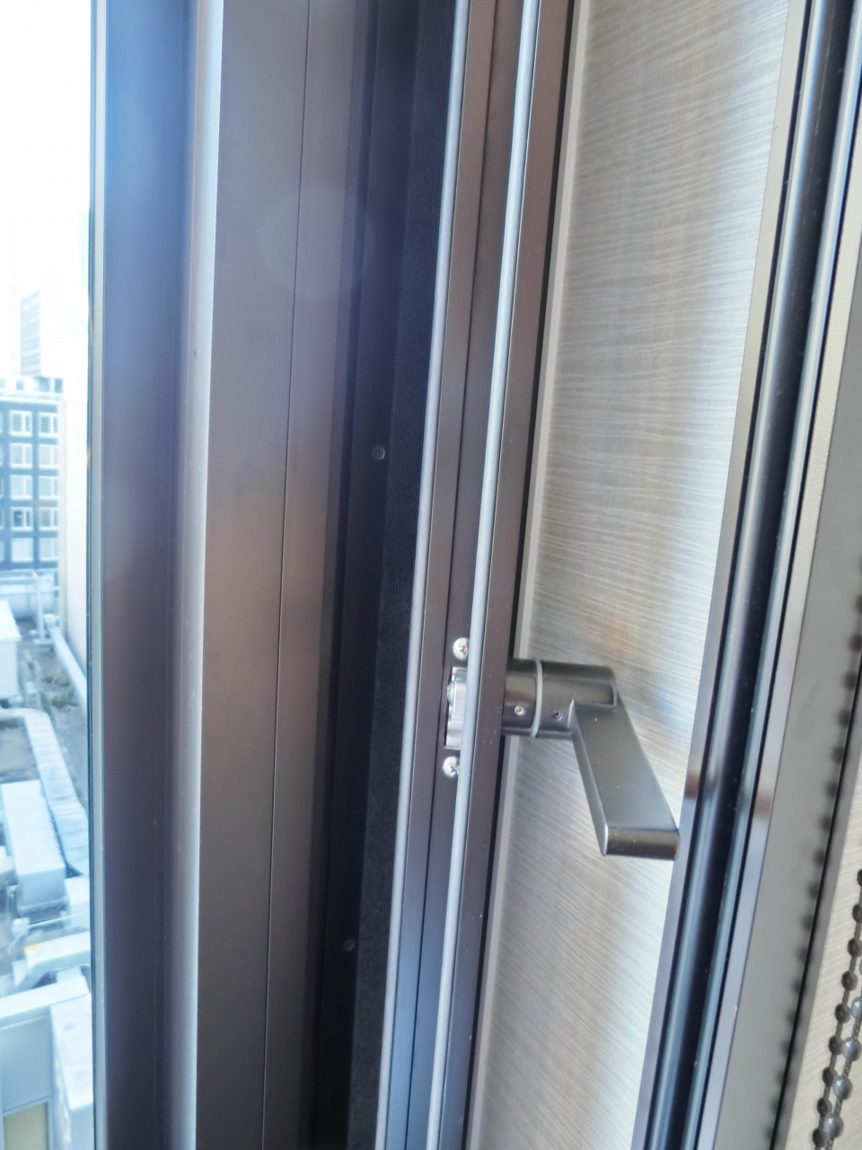 オシャレな出窓タイプの部屋。しかし、マンションや低層住宅に面しているのでプライバシー保護のため眺望無し。窓と言っても元々開かない仕様の窓ですから防音は良いはずですが、通りの向こうのジェットコースターの絶叫が一定間隔で微かに聞こえてきます(^^;