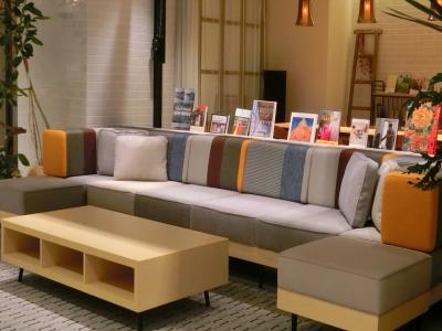 【借景】1階部分は、フロント、レストラン、ショップがシームレスで一体化している。レストランのインテリアの一部と思ってたものが花屋だったり、ロビーのソファーと思ってたものがレストランの半個室席だったというフェイントも多い。造園でいうところの借景を多用して全体としてメチャオサレに仕上げている(笑)
