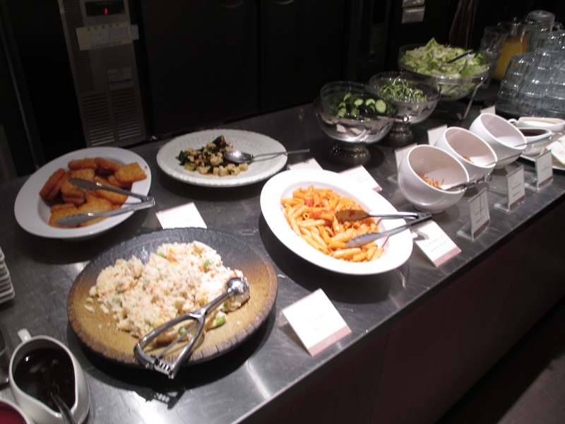 メインプレートを和洋中から選択。お惣菜とドリンクは自由に取るハーフビュッフェ方式で店頭に一応1050円(増税前)と表示されている。素泊まりプランは無く全プラン朝食付きなので実際いくらなのかは不明。それに『サービス料は頂きません』とはっきり明示されているわりには乏しい内容。朝食店のLAPISは昼以降のメニューを見れば分かるがパスタとケーキ専門。和の焼鮭プレートと中の中華粥プレートが問題外なのは分かる。しかし、まあまあ近い「洋」を選んでも「……」となってしまう内容。
