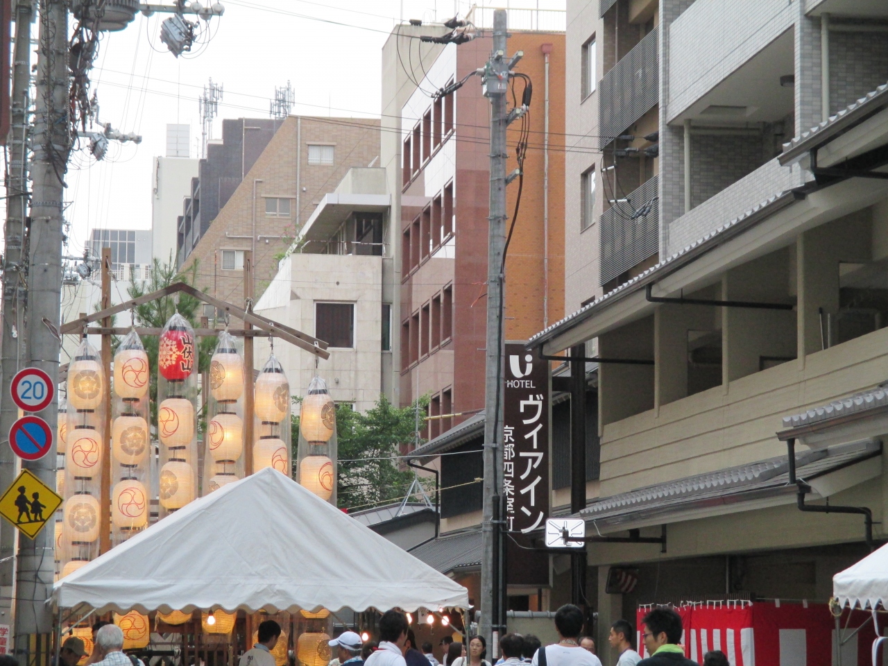 山鉾巡りに最適な立地。去年までの方式だったら人混みと一方通行で宿から出る時も、戻る時も無駄に時間がかかって大変だったに違いない。でも今年からは前祭と後祭に分かれたから新町通りは空いていて楽。後祭も露店無しならそんなには混雑しないかも。