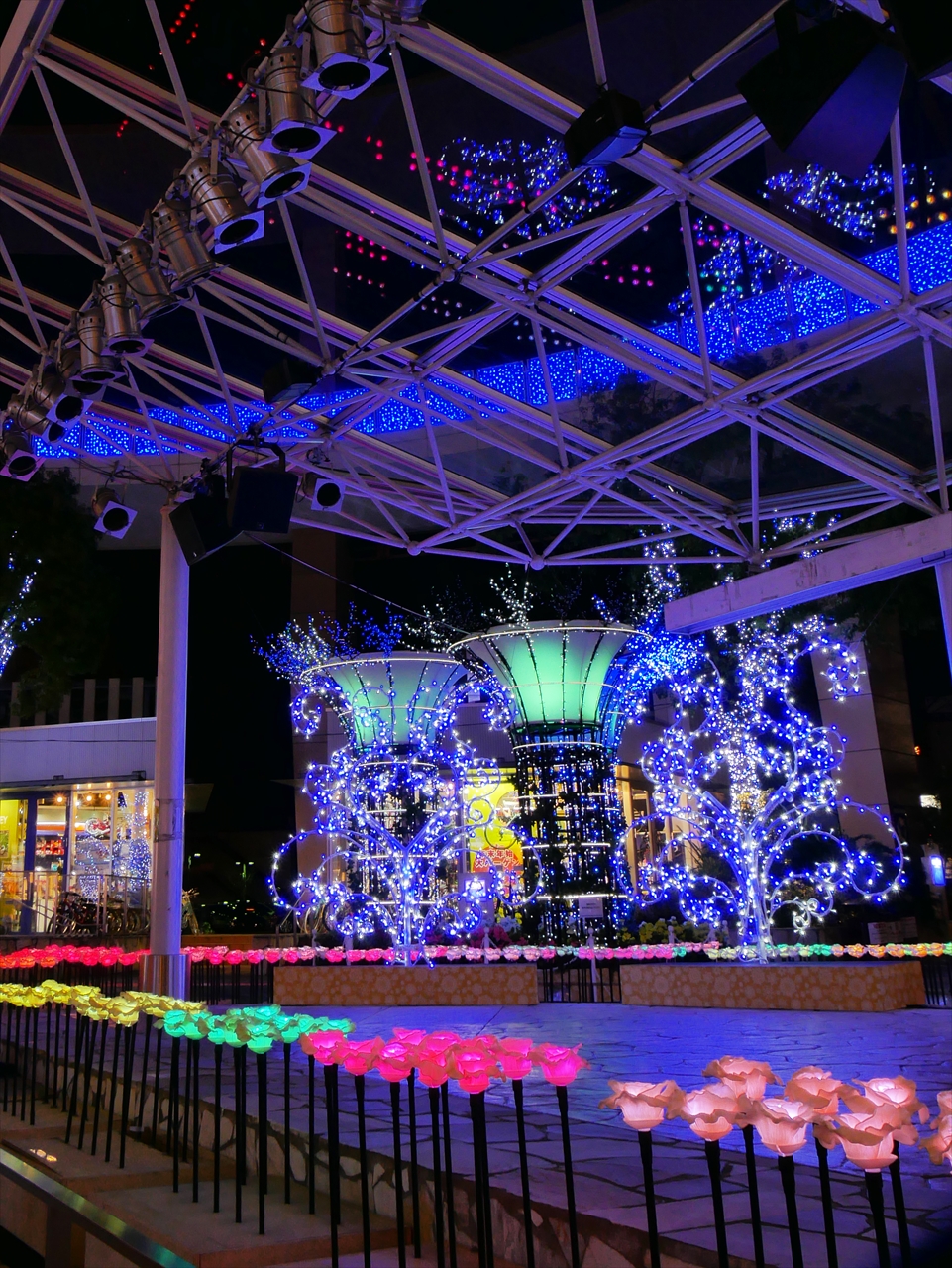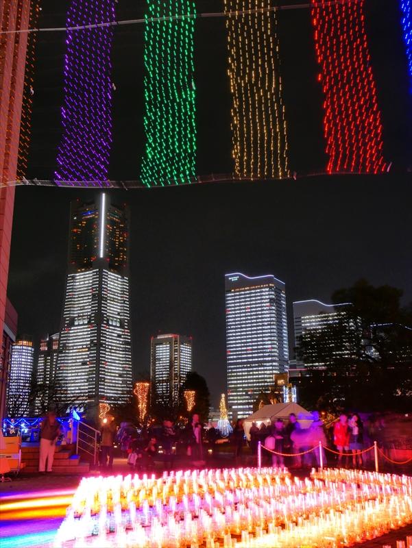 メインのナビオス横浜下は去年よりも強力なスポットライトが列を成しています。ロウソクの灯かりにその何倍も強力なスポットライトをド派手に当てて雰囲気をブチ壊すというのは、発想の転換、革命とでもいうべきで画期的です。
