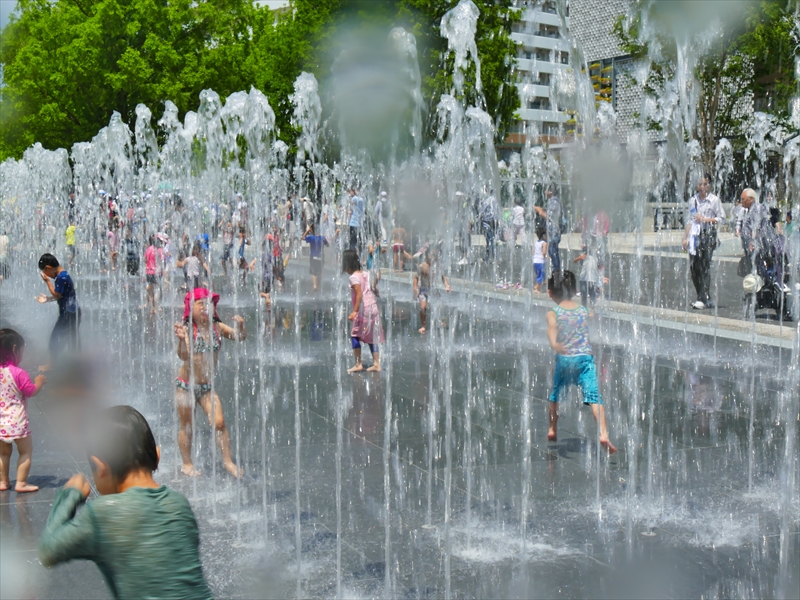 噴水は近所の子供たちが着替え持参でプールがわりに利用しています。