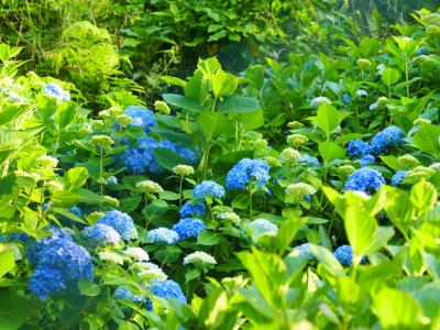 前夜に軽いお湿り。からっと晴れて絶好のコンディションでしたが、紫陽花の方はまだそれほどでもなく散策路のあじさいよりも鉢植えのあじさいの方がよっぽど見応えあり(^^;