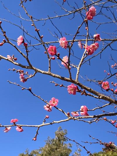 「新橋浅間神社」にて。新年始まったばかりだけど、もう梅が咲いていた。