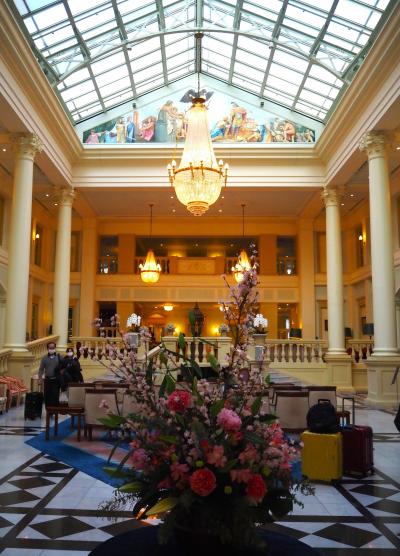 ハウステンボス内、アムステルダム広場にあるので園内のどこへ行くのにも、とても便利です。入口を入ると広々としたヨーロピアン調のアトリウムロビーが出迎えてくれて雰囲気もとっても良いです。4人だったので3Fの華やかなヨーロピアン調のデラックスデザイナーズルーム・フォースでした。花柄の壁紙で可愛いく、またブルー系のシックなお部屋もあるよう。4人でもエキストラベッドではなくて、シモンズ製のものが4人分あります。45㎡はあったので狭さも感じませんでした。ウェルカムゲート入口手前に「場内ホテル手荷物預かり所」にて手荷物を預かってくれてホテルまで届けてくれるので、身軽になり園内をすぐに楽しめます。荷物が届くのに2時間はかかるようです。年数は経っていますが、古さはさほど感じずに快適に過ごせました。また閉園後も開園前も自由に園内をお散歩できるのも良いです。朝食ビュフェも地元のお野菜など豊富でデザートにカステラもあり楽しめました。