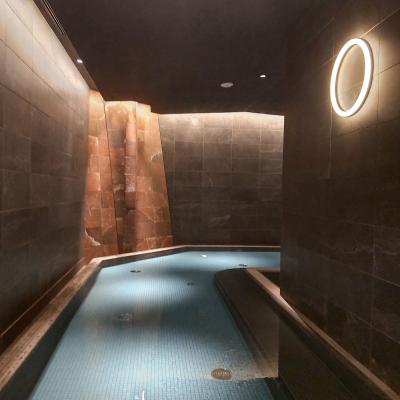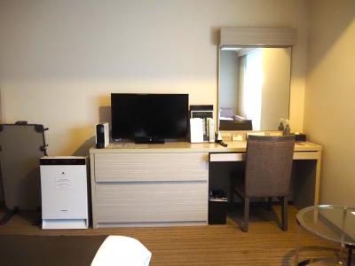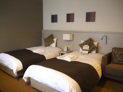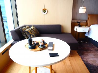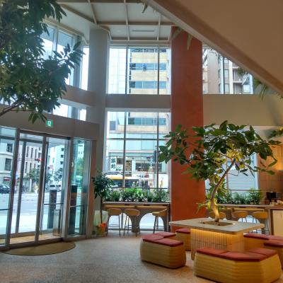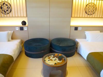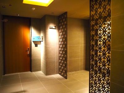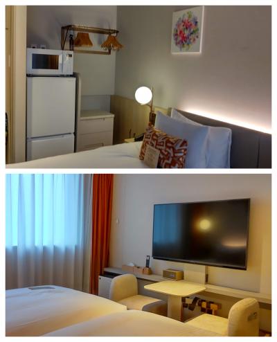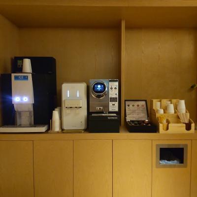 ホテルへ入ると笑顔でスタッフの方がお出迎えしてくれました。チェックインしてお部屋へ行くと、大き目の冷蔵庫、ランドリーや電子レンジも置いてあり、滞在型のホテルでもあるようです。13Fのお部屋からは土地柄かスリガラスで外は見えませんでした。B1には洞窟をイメージした大浴場があり、またフィットネスジムもありました。2Fにはリフレッシュスペースでコーヒーマシンなどもありました。お風呂上りにこちらでマッタリ。