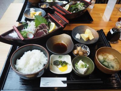ひろめ市場や高知城などは路面電車の「とさでん」を使いました。遠くではないのでさほど問題はないのですが。お食事をするところも少し歩いたら、色々とありました。ホテル内に併設の「エキマエノ駱駝」は朝食の場所にもなっています。朝食は定食スタイルで、カツオの藁焼きタタキ定食、土佐カンパチ定食、焼き魚定食(鯖)、釜揚げしらす丼定食、トースト定食、TKG定食と6種類の中から選べます。ホテル内から直結で、夜は居酒屋になります。観光案内所の土佐テラスもすぐ近くにあり、MY周遊バスの始発駅でもあるので、混雑時にも乗れないってことはないと思います。