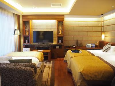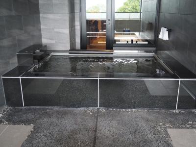 お部屋はどこも50㎡以上あり、ゆっくりくつろげます。ガラス張りのお部屋からの景色も良くて夜景もきれいでした。雨が降ったりすると曇りますが。