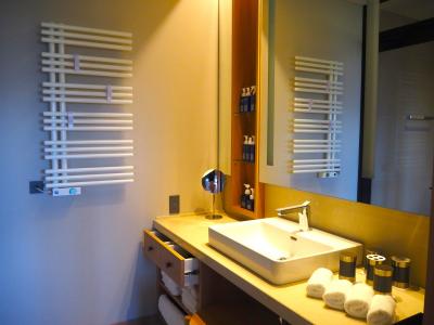 お部屋も広くはないのですがバスルームが独立型で洗面所もゆったり使えます。2Fに温浴施設もあり、ゆっくり入ることができました。アイスキャンディーもありました。ミネラルウォーターも毎日一本いただけました。