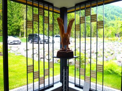以前の老舗旅館「神泉閣」の廃業で新しくJR九州のホテル「嬉野温泉 八十八」が2023年10月にオープンしました。館内には「神泉閣」の貴重な欄間や岩などを展示して残していました。