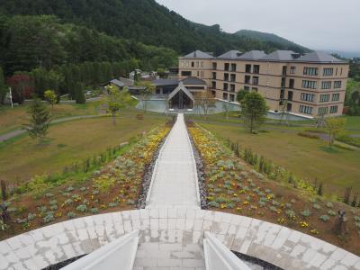 帯広に滞在するなら、泊ってみたいと思っていたホテルです。外観は、すべて十勝産の粘土を使用して造られたレンガで、アイヌの伝統的な文様を取り入れた北海道らしいデザイン。ロビーに続くラウンジは大きなガラス一面で明るく、コーヒのサービスもあります。ラウンジから眺められる2階の曲線美が優雅で、美しいお庭も見られてゆっくりとできました。館内には木彫りのヒグマが5頭飾られていて、探して回るのも楽しかったです。また絵画なども多く飾られていて、美術館の様相を呈していました。