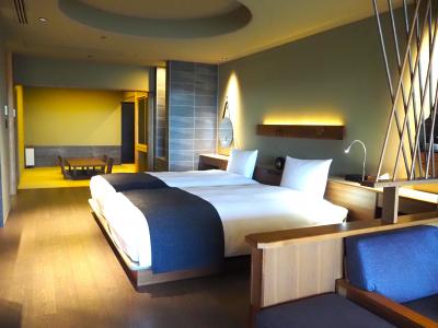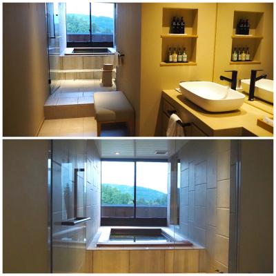 お部屋は和風で落ち着けました。ベッドマットも全室エアウィーヴです。 かけ流し100%の部屋付き温泉がとても気持ち良かったです。嬉野温泉は三大美肌の湯で支笏湖温泉「碧の座」ほどのとろみはありませんがお肌はしっとりしました。大浴場には、茶アロマのロウリュウサウナとお茶香るドライサウナを設置されて楽しめました。各お部屋に温泉風呂もあるので混んでいませんでした。