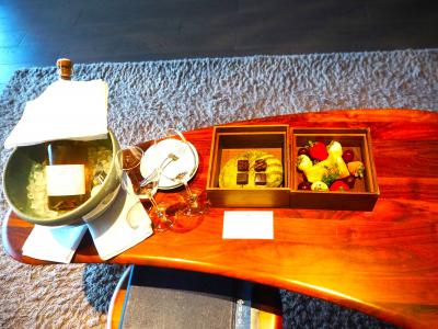 オールインクルーシブで、まずはお部屋でリラックスした後、ラウンジでケーキセットを楽しみました。特にイチゴのタルトが絶品でした。サイフォンで淹れたコーヒーも格別の味わいでした。ラウンジでは、オードブルや軽食、アルコールも提供されています。また、お部屋でのサービスも可能です。