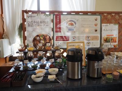 車じゃないとアクセスしにくいようです。そのためか広い駐車場もホテルの前にありました。家族風呂付プランだったので家族風呂しか使っていませんが、大浴場は町内の方々もよく利用されていました。朝食だけしか付けていなかったので、こちらのレストラン「茶屋ゆうぐれ」で近海ツブ、タコ釜めしをいただきました。さずが地もので美味しかったです。朝食もバラエティに富んで、全20種のトッピングから選ぶ「贅沢日高昆布出汁茶漬け」やおにぎりも好きな具材で作ってもらえて美味しくいただけました。