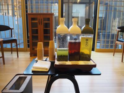 友人とこの11月に行くことができました。車じゃないので新幹線の単独駅、嬉野温泉駅まで事前予約でお迎えに来てもらいました。5分くらいです。入口で靴を脱ぐタイプです。少し早めの時間だったのですがラウンジで早速、嬉野茶をいただきながら待っていたら早めにお部屋に案内されました。お部屋でのチェックイン手続きと説明を受けます。
