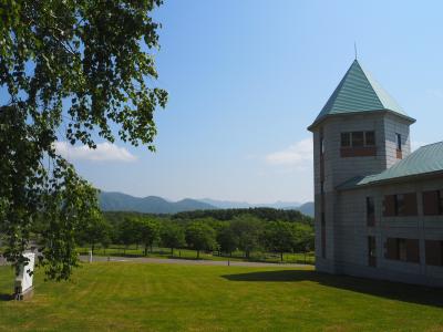 日本中央競馬会が優駿の里構想をテーマとして「馬と自然とふれあえる里」として1998年にオープン。天井が屋根状で3メートルほどの高さがありリゾートホテル風です。日高山脈を見渡せる広大な自然の中にあり、伺った6月はホテルの前にルピナスの群生がありました。
