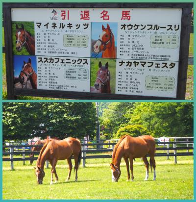 近くには乗馬用の馬や、かつて優秀な成績を収めたサラブレッドの余生を送る牧場もあり